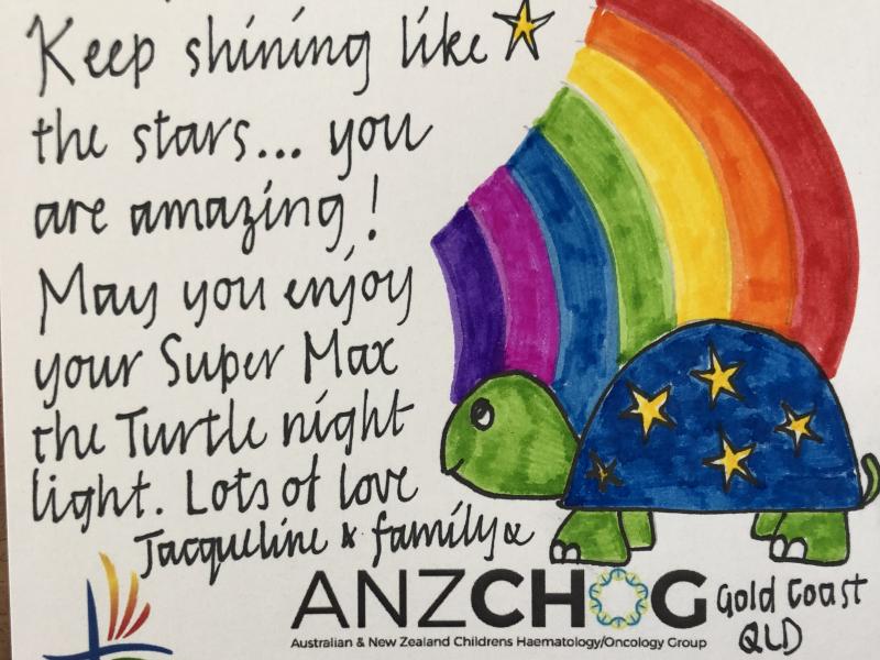 This ensures that 100% of every dollar you give will go directly toward the purchase and delivery of Super Max the Turtle night lights as well as children’s oncology and haematology research. Your donation money will never be used for anything other than that.